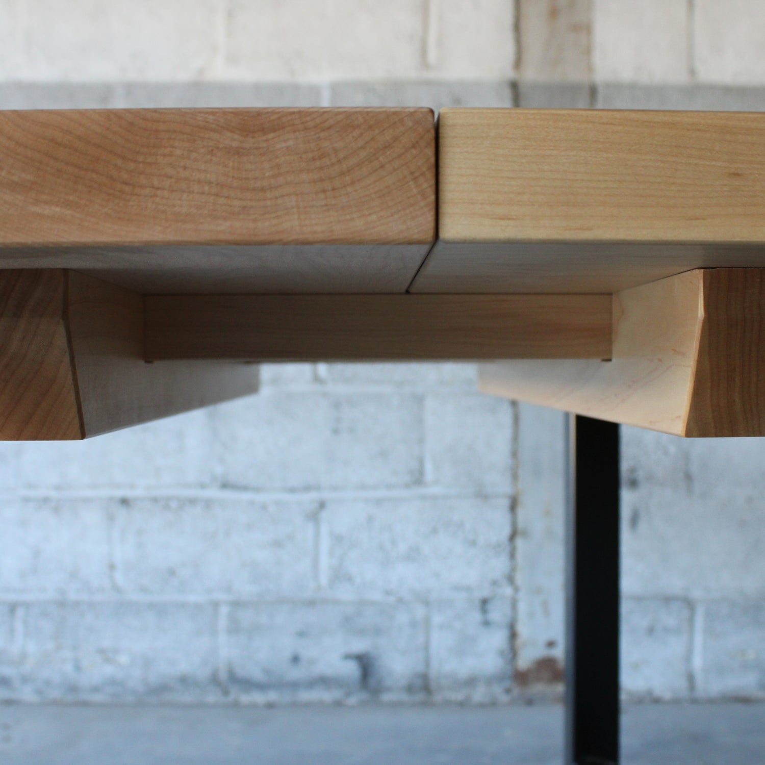 The grain on the extensions runs width-wise to ensure structural integrity and stability. This design helps prevent warping while maintaining the strength of the table.